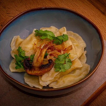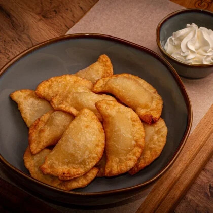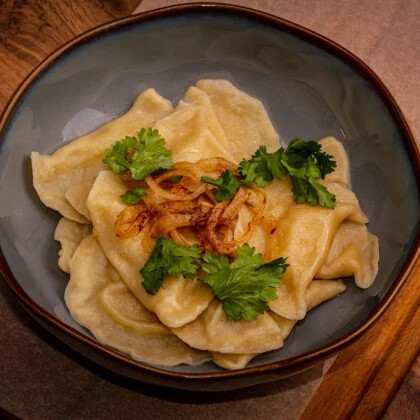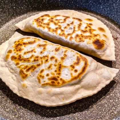 Мука пшеничная, вода, баранина, лук репчатый, чеснок, кинза, петрушка, укроп, мята, зира (кумин), чёрный перец молотый, соль.